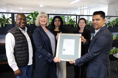 We were delighted to present DP World FZE (Dubai) and its subsidiaries in Dubai, Bangalore and Hong Kong with ISO 27001 certification.