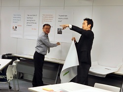 「トレイン・ザ・トレイナー」では、これら人間の脳の機能や、知覚を理解したうえでその機能を刺激するためのメソッドを学びます。様々な教育訓練方法の長所や短所について討議し、受講者の皆さんがそれぞれの職場に戻った時に、教育訓練の目的を再考するきっかけを提供します。つまり、「研修を行うことが目的でない、相手の脳を刺激し、受講者が学習成果を職場で応用し仕事の成果につなげる」という目的です。「トレイン・ザ・トレイナー」に参加した受講生の皆さんは、自分に合った社内研修スタイルを発見できたようです。