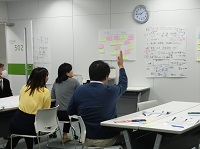 この講師と受講生間のキャッチボールが次第に受講者同士のキャッチボールに広がり始めると、グループワークに取り組みます。